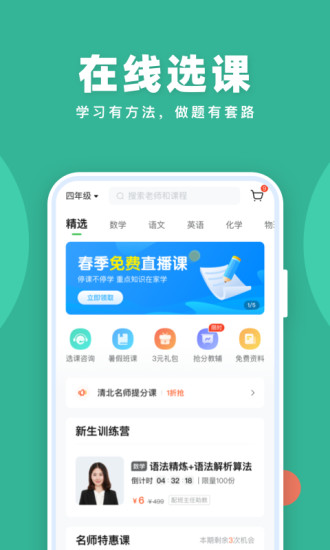 作业帮直播课安卓版是一款专注在教学层次的高质量辅助学习软件,让用户们能够在线完成着自身学习课程的选择操作,继而让你们的学习更加拥有着针对性,掌握着任何解题的优质方法以及套路,让你们能够轻松迎课程上边的难题,作业帮直播课安卓版采取着全方位实时直播授课的教育模式,让每一个用户能够从手机中感受着最具实时互动性的学习服务,时时刻刻进行着互动交互,有什么不懂之处也能立马进行着反馈,让学习不留下半分懵懂!喜欢作业帮直播课安卓版就立即体验吧!